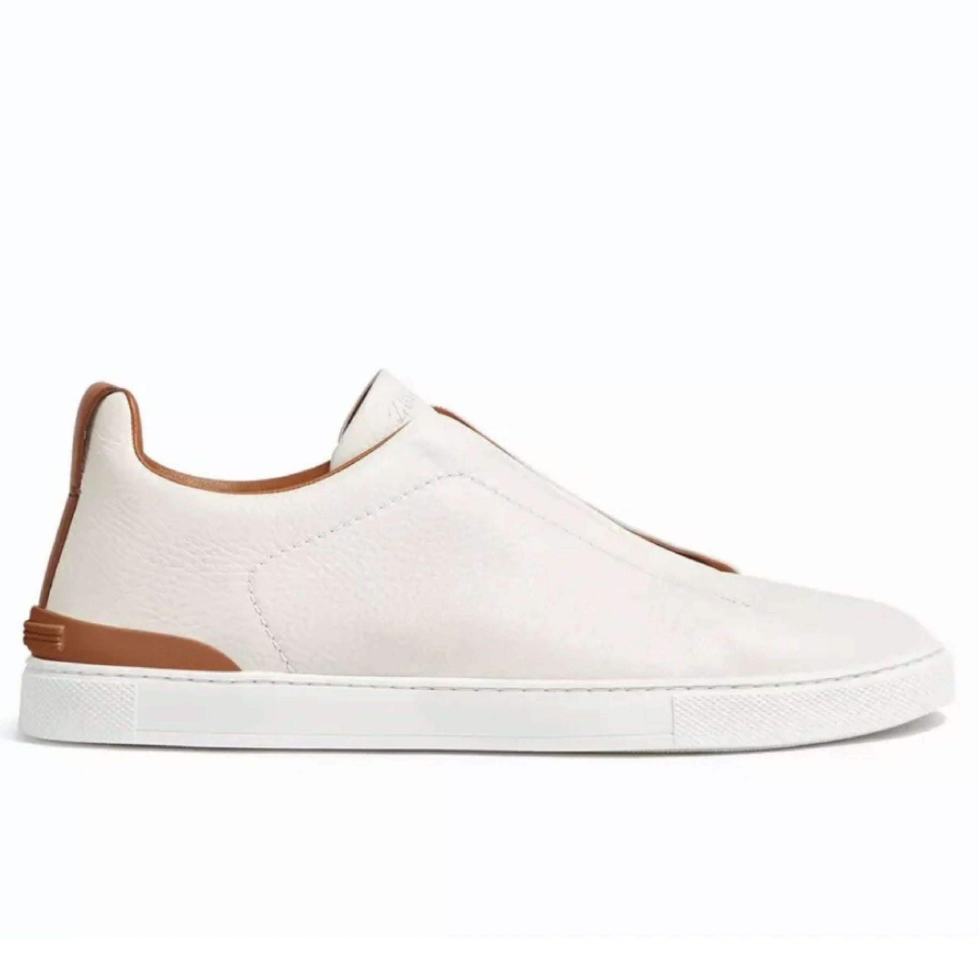 Zegna Deerskin Triple Stitch Off White/Brown Men's